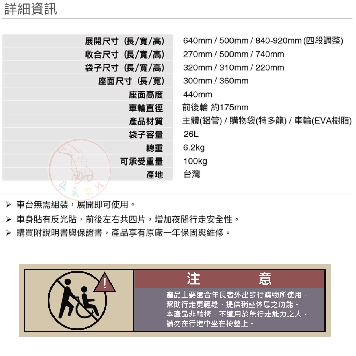產品材質 主體(鋁管) / 購物袋(特多龍) / 車輪(EVA樹脂)