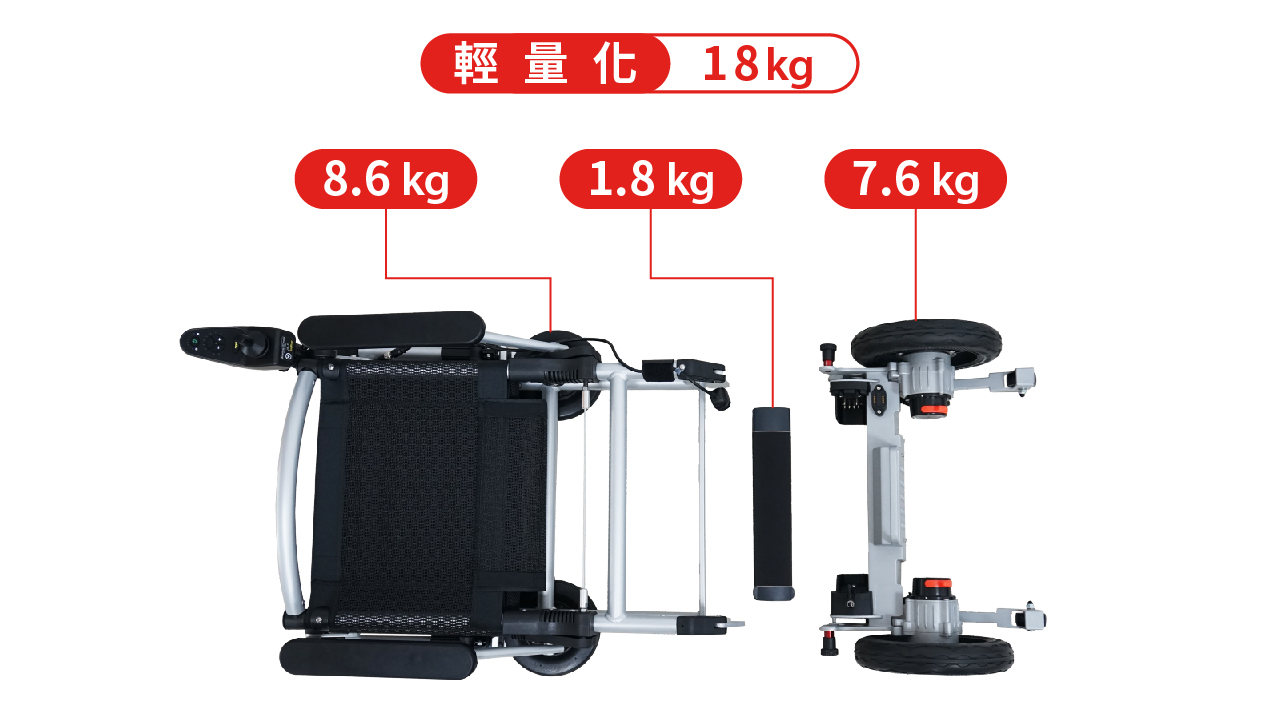 重量 :16.2kg (前支架:8.6kg;後輪部分:7.6kg;電池1.8 kg)