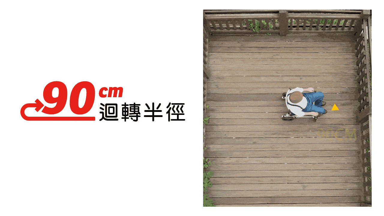 - 只需要80cm半徑,即可完成原地轉圈。